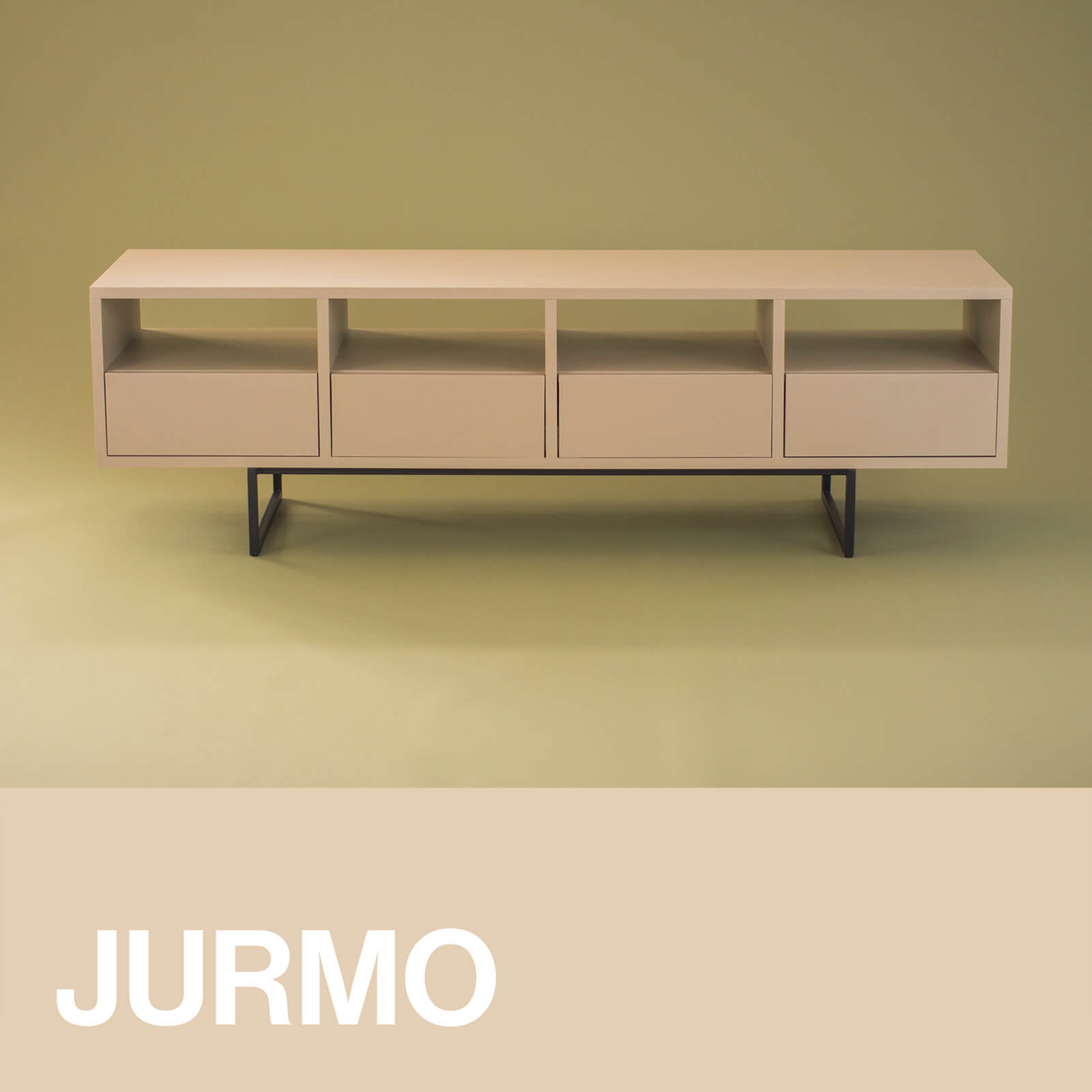 JURMO_5 to przykład minimalistycznego wzornictwa, z proporcjami utrzymanymi w harmonii. Stanowi ona przykład funkcjonalnego designu, dlatego łączy zarówno estetyczne walory, jak i praktyczne rozwiązania. Wyposażona jest w cztery półki oraz szuflady okute w prowadnice firmy Blum, które zapewniają trwałość i niezawodność.