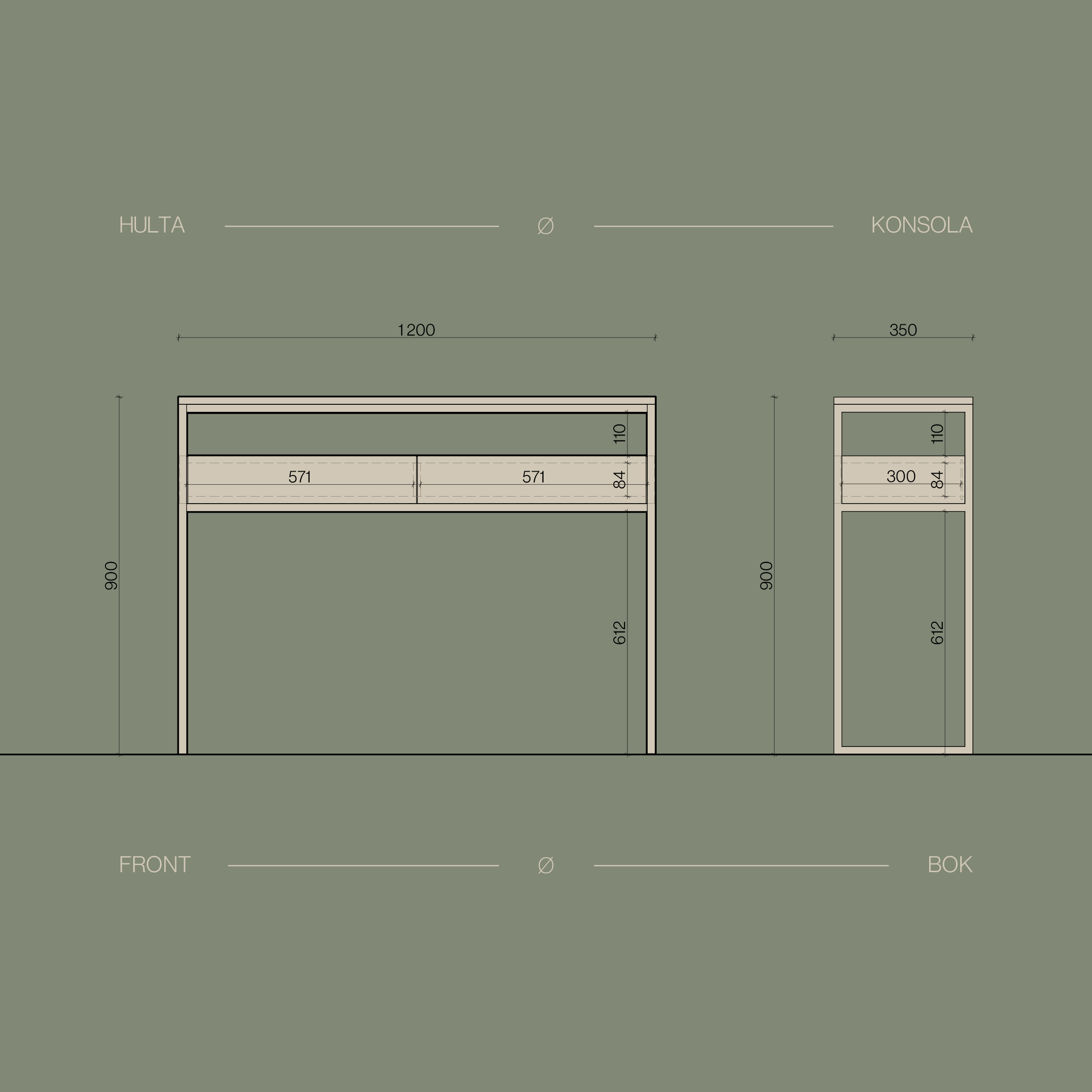 HULTA jest komodą personalizowaną, dzięki czemu możliwe jest dostosowanie jej korpusu oraz uchwytów do własnych potrzeb.