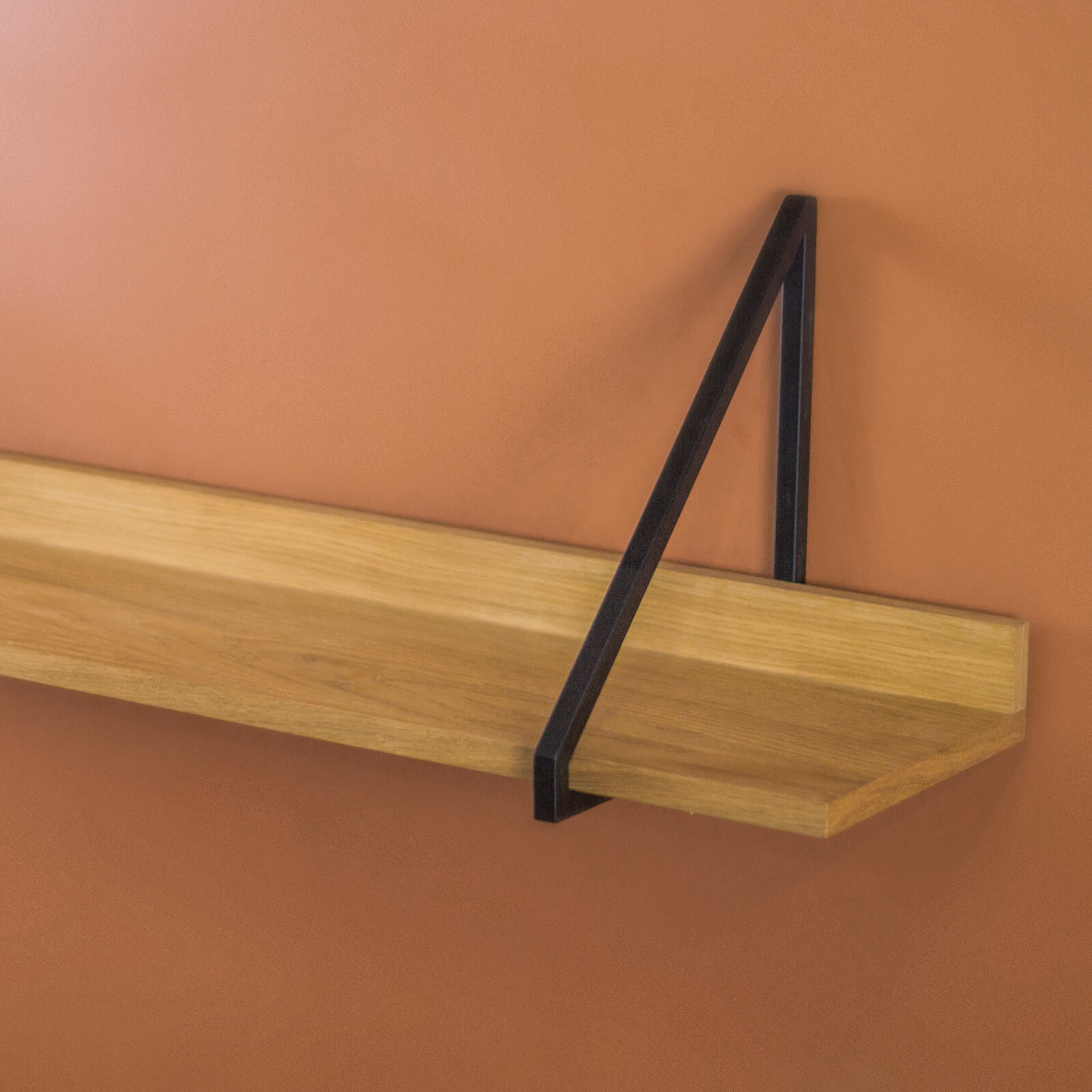 Personalizacja półki w postaci wyboru kolorystyki i materiału pozwala dopasować półkę do własnych preferencji i wystroju wnętrza. Konstrukcja półki wykonana jest ze stali malowanej proszkowo na kolor czarny. Montaż jest prosty i intuicyjny – nie wymaga specjalistycznej wiedzy ani narzędzi.
