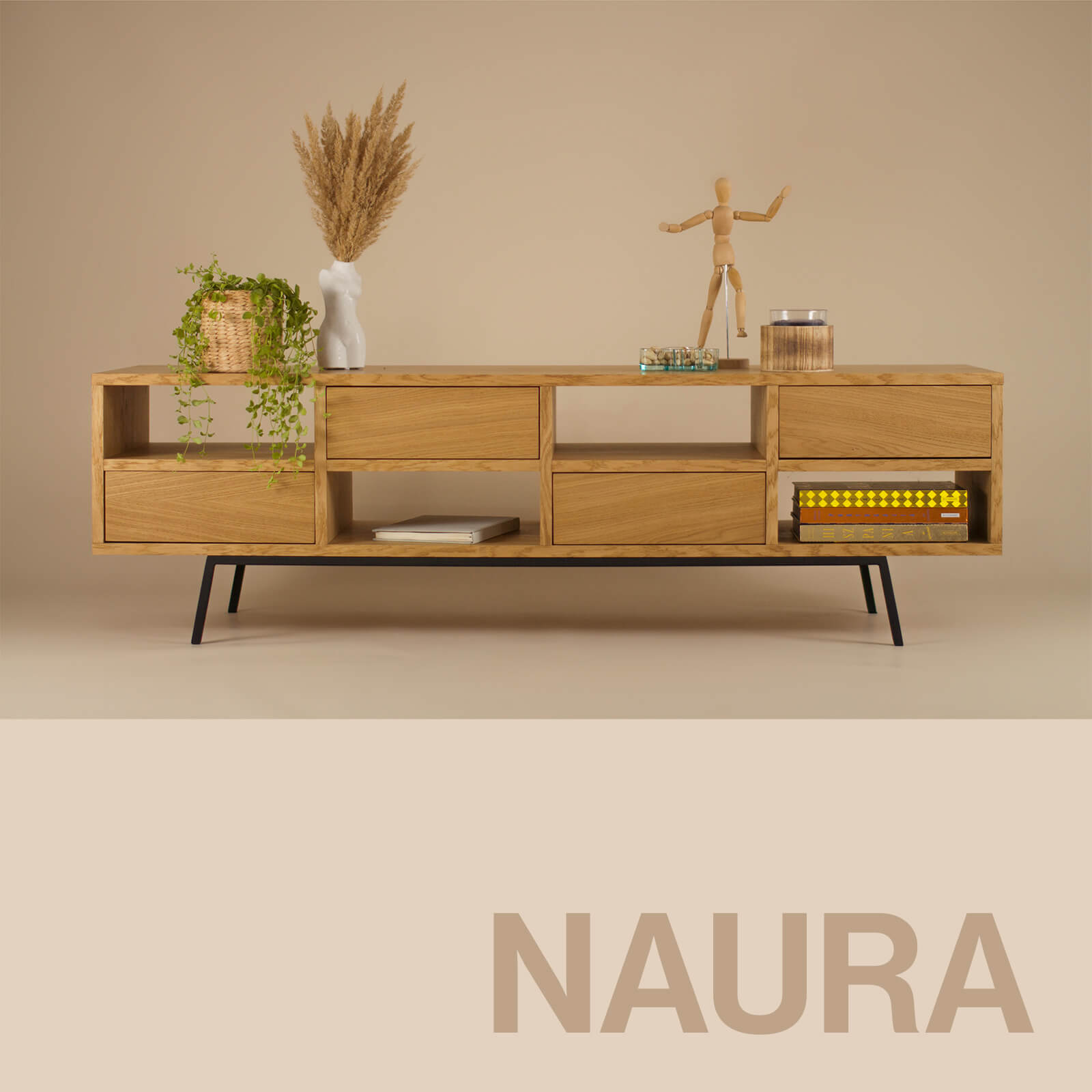NAURA to funkcjonalny mebel o prostej, geometrycznej formie, który świetnie dostosuje się do każdego wnętrza dzięki szerokiemu zakresowi personalizacji.