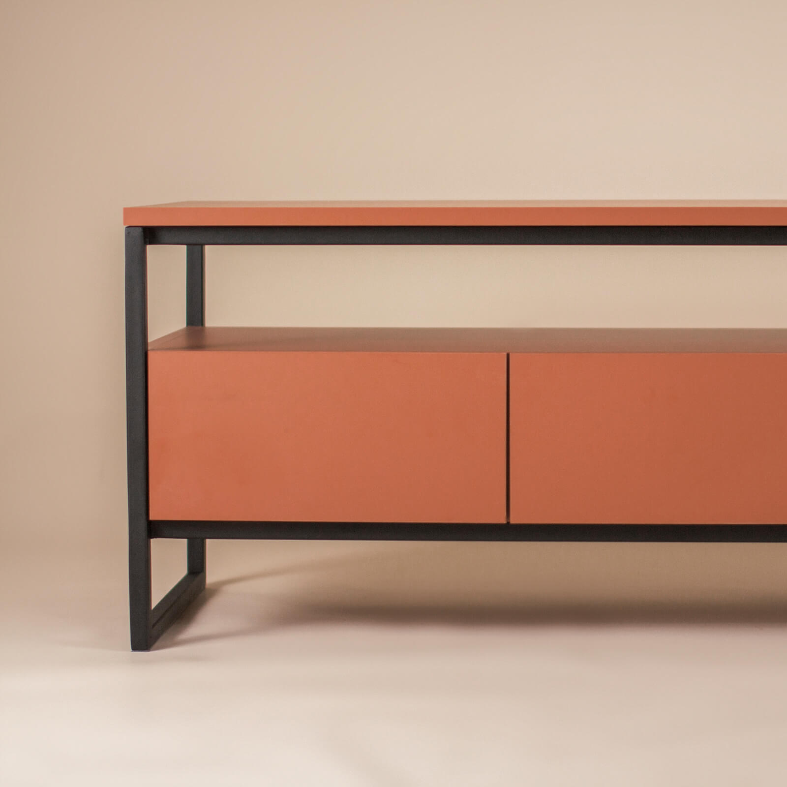 Jej blat oraz korpus umieszczone są na solidnym, malowanym proszkowo stelażu stalowym. Szafka ta, jak wszystkie nasze meble wyposażona jest w wysokiej jakości okucia od renomowanej firmy Blum, gwarantujące płynne działanie prowadnic szuflad.