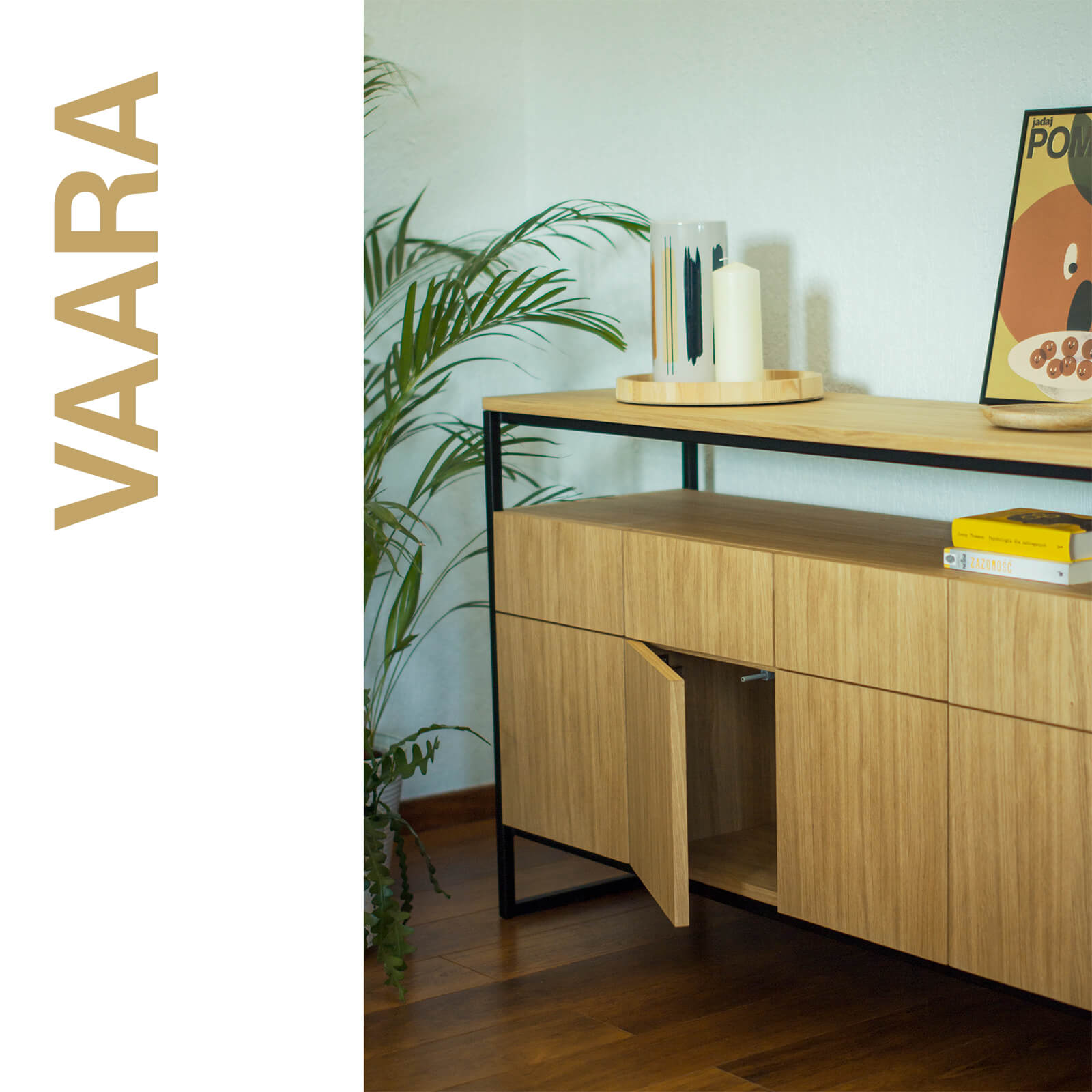 Komoda VAARA z jednej strony przykuwa uwagę solidną konstrukcją, z drugiej prostotą i harmonią. Została opracowana jako rozwiązanie do przechowywania, pełniące jednocześnie funkcję elementu dekoracyjnego.